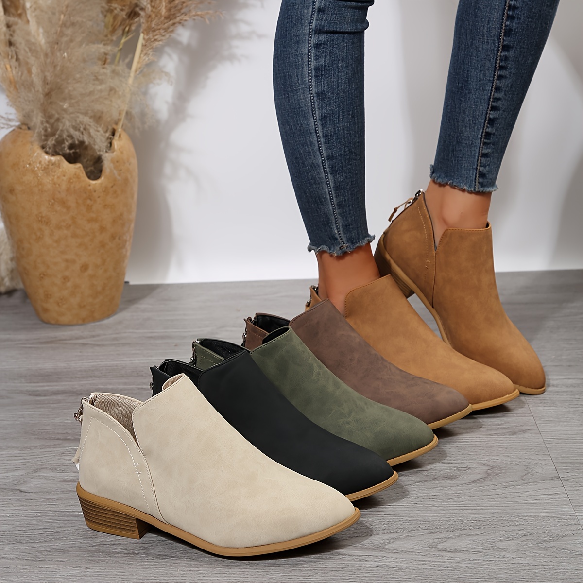 Women's Retro Chunky Heeled Waterproof Back Zipper Boots