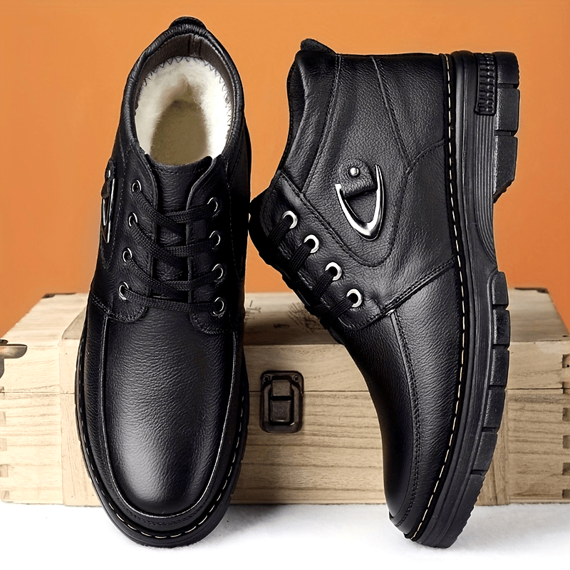 Men's Fuzzy Lining Windproof Waterproof Leather Orthopedic Boots — BUY 2 FREE SHIPPING