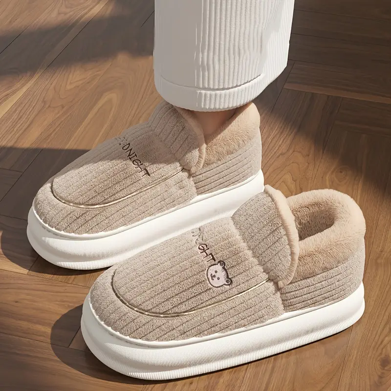 Women's Fuzzy Thermal Non Slip Indoor Walking Shoes Slip-On Bedroom Slippers