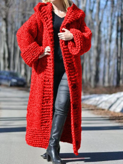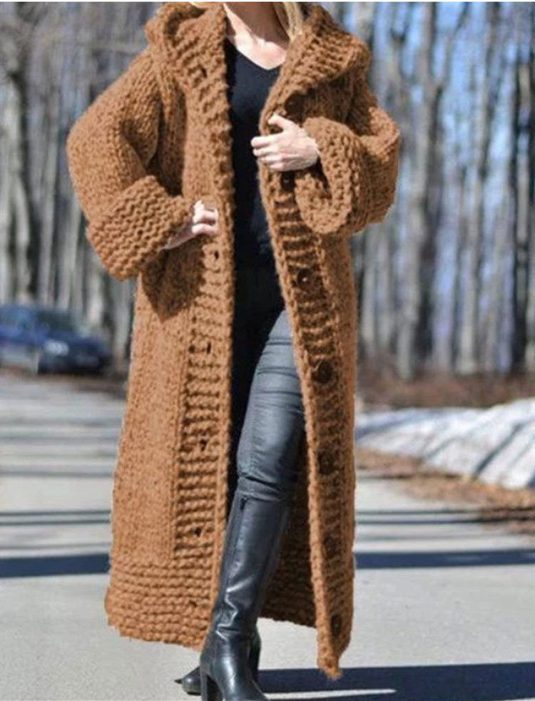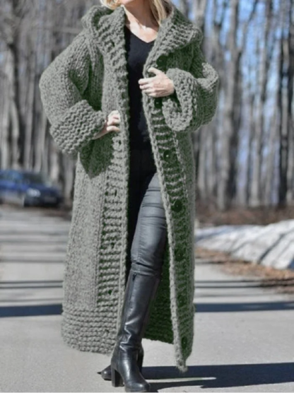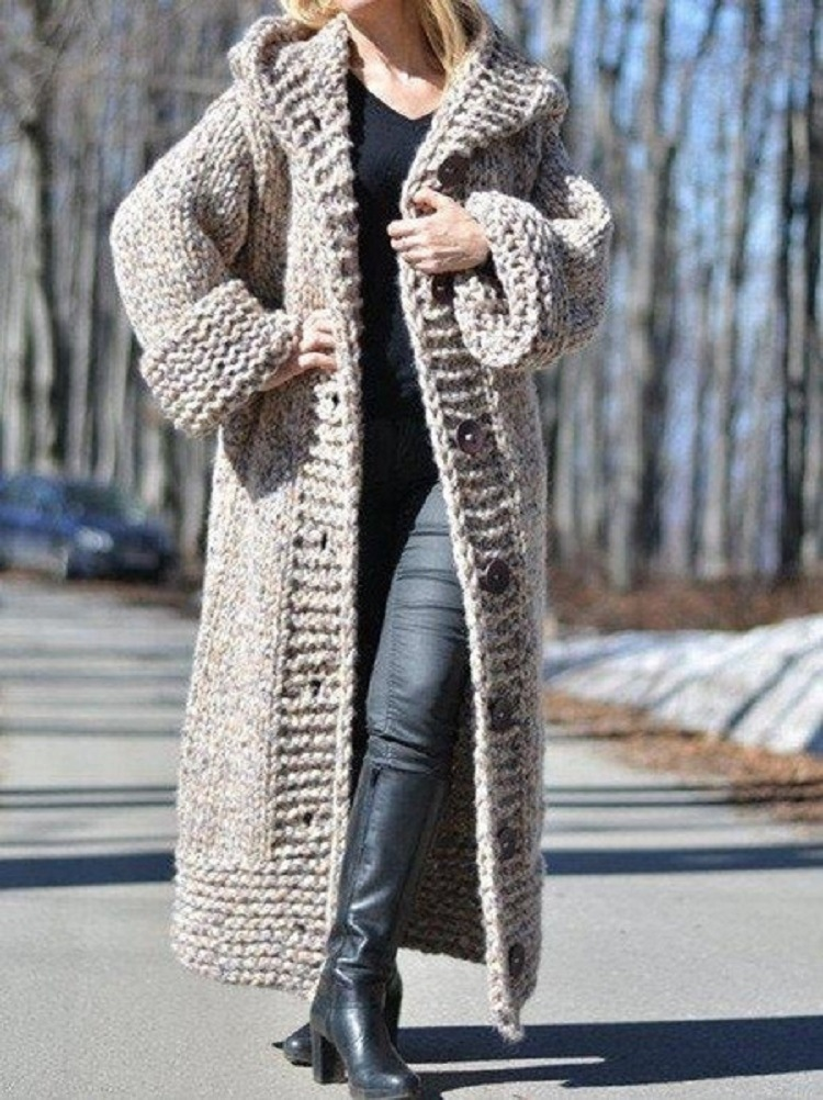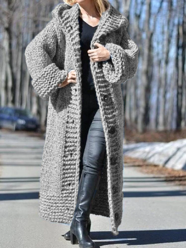 Plain Casual Long Cotton Sweater Coat