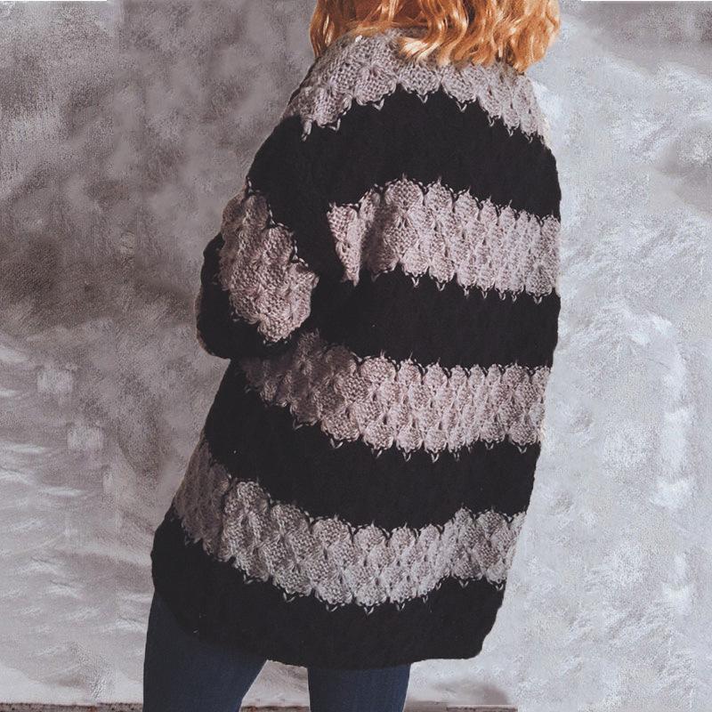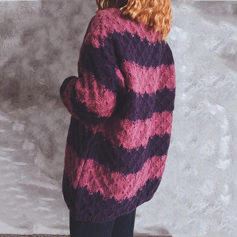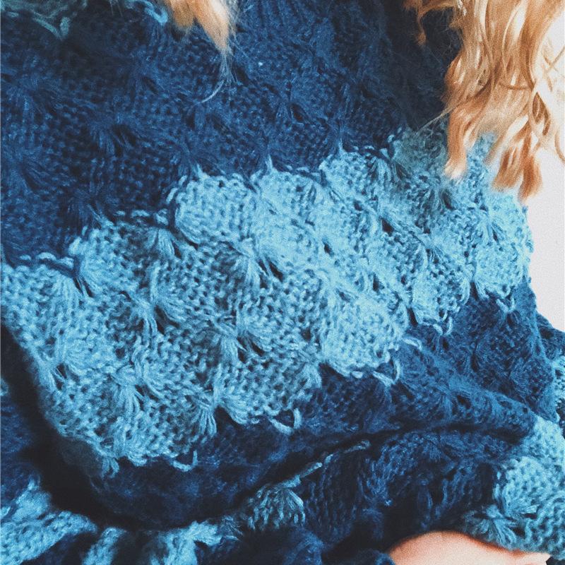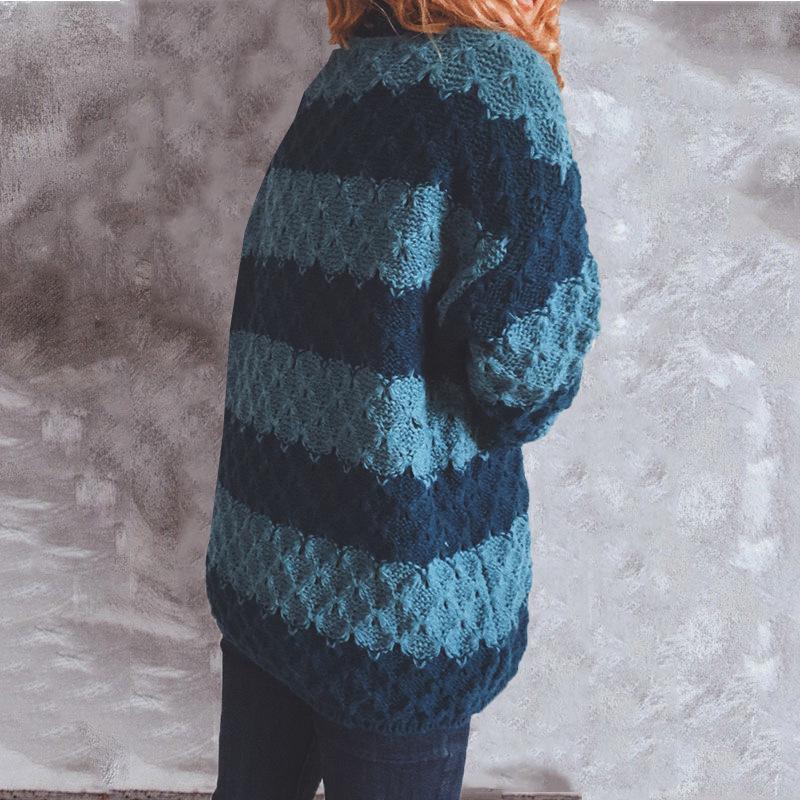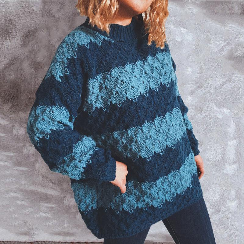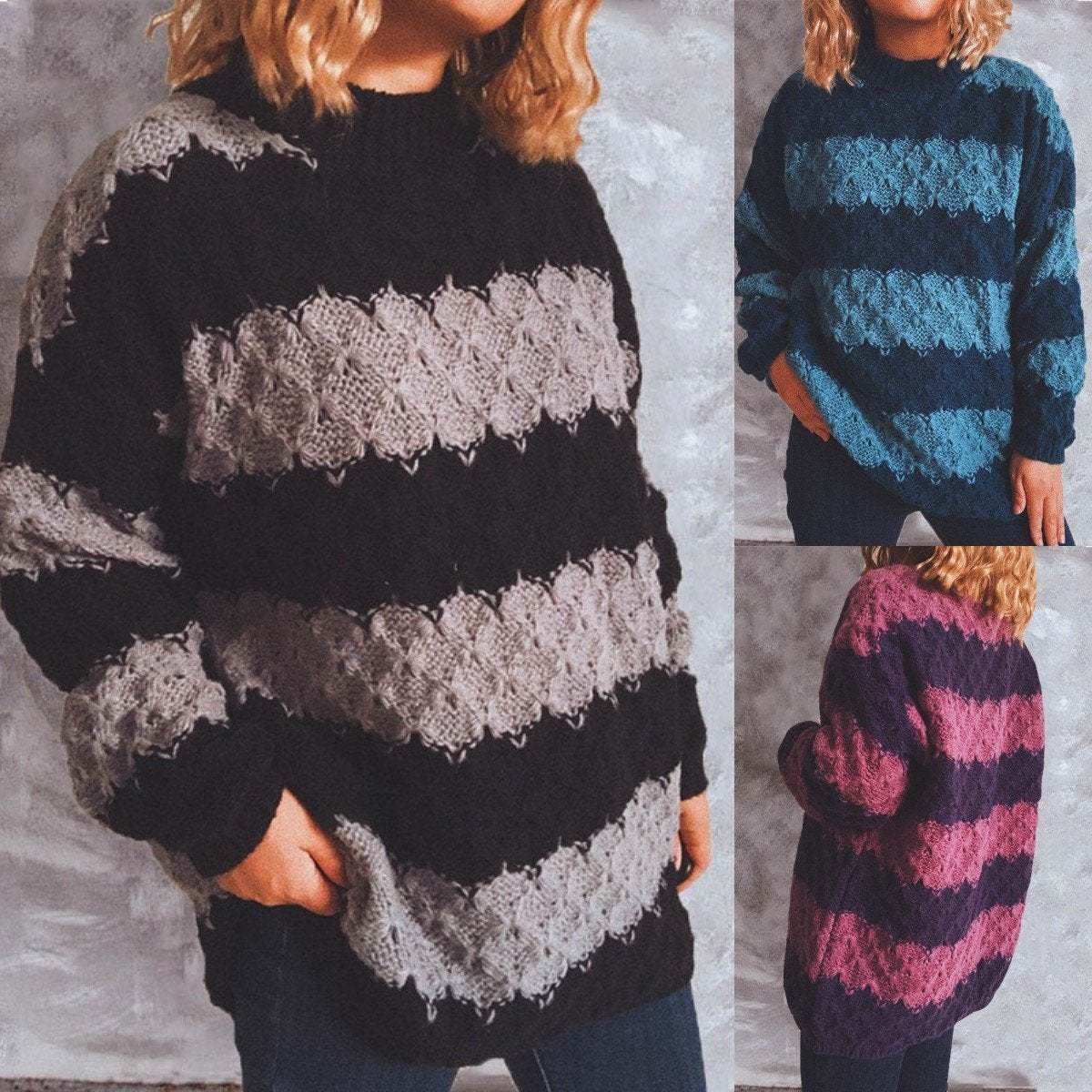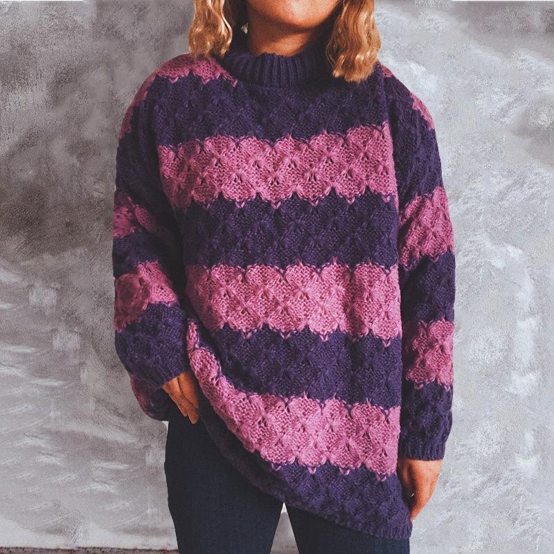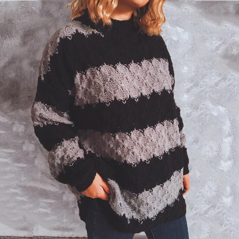 STYLISH COLOR BLOCK PRINT ROUND NECK SWEATER