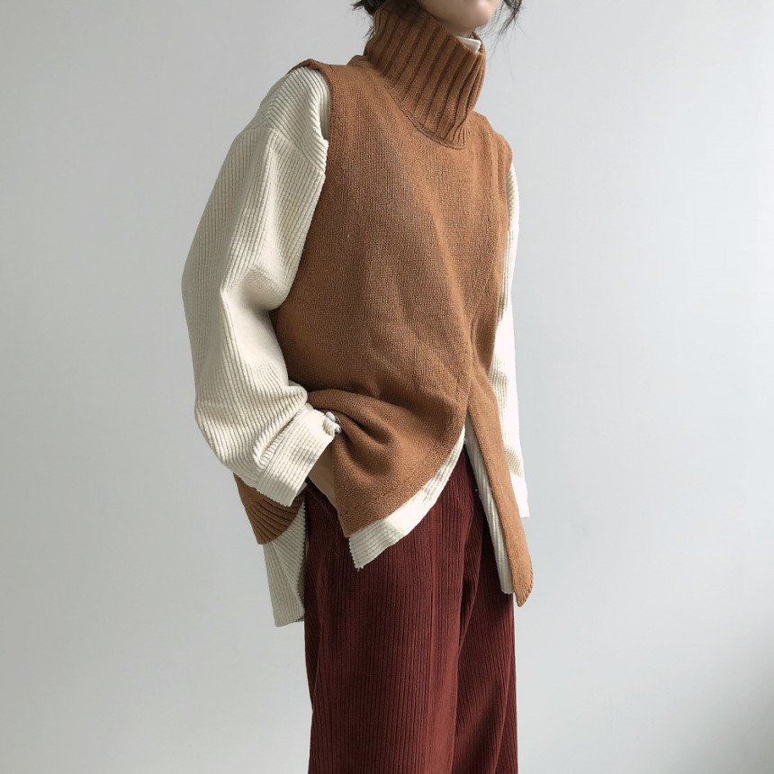 Cross Design Turtleneck Knitted Sweater Vest