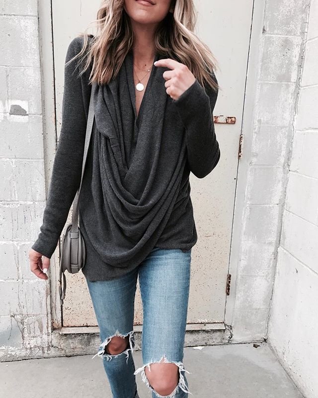 Loose Irregular Pile Pile Collar Long Slim T-Shirt Top